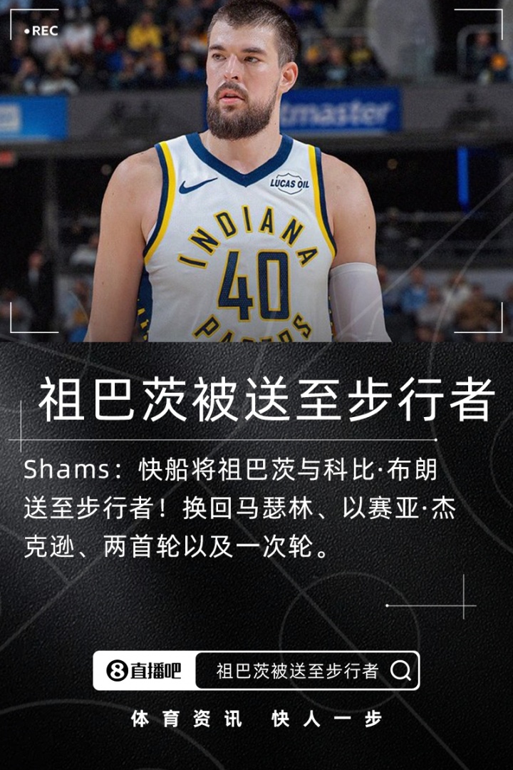 2换5💥祖巴茨被快船交易至步行者!换马瑟林+杰克逊+2首轮1次轮